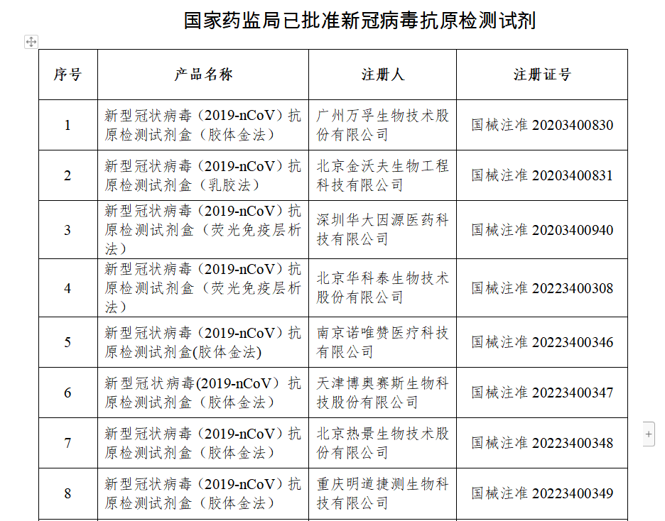 | 國(guó)家藥監(jiān)局已批準(zhǔn)19個(gè)新冠病毒抗原檢測(cè)試劑 |
