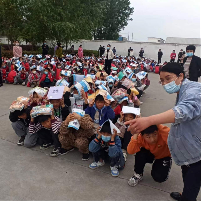 五星鎮(zhèn)中心學(xué)校應(yīng)急疏散指導(dǎo)員現(xiàn)場(chǎng)指導(dǎo)學(xué)生疏散后如何避險(xiǎn)