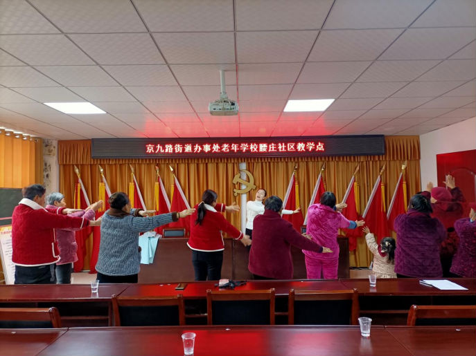 ![]() 在劉老師的多次鼓勵下,參與學習的中老年居民也開始站起來跟著老師互動起來,現(xiàn)場氛圍熱烈,大家認真學習老師教授的每一個動作,教學活動在一片歡聲笑語中結束。