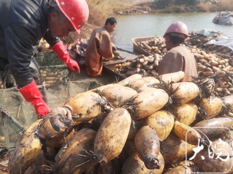開欄語:又是一年新春將至。放眼江淮大地,多少新氣象、多少新變化,就發(fā)生在我們身邊。 到基層去,將鏡頭、筆觸直接延伸到社會(huì)生活的最前沿,用腳步丈量民情,用心靈感受民生。新安晚報(bào)、安徽網(wǎng)、大皖新聞從即日起推出《新春走基層》欄目,將推出最鮮活、最生動(dòng)、最感人的新聞報(bào)道,展現(xiàn)真實(shí)、全面、立體的安徽。 大皖新聞?dòng)?/strong> 新春將至,年味兒漸濃。安慶市宜秀區(qū)白澤湖鄉(xiāng)因大面積發(fā)展蔬菜產(chǎn)業(yè),被譽(yù)為安慶城區(qū)的“菜園子”。1月23日,室外天寒地凍,新安晚報(bào)、安徽網(wǎng)、大皖新聞?dòng)浾咦哌M(jìn)白澤湖鄉(xiāng),發(fā)現(xiàn)堅(jiān)守在蔬菜基地的菜農(nóng)們,為了城區(qū)市民“舌尖上的美味”,加班加點(diǎn)忙得熱火朝天。 “藕”遇大豐收,挖藕程序多是個(gè)技術(shù)活 23日下午,記者來到白澤湖鄉(xiāng)芭茅村600余畝淺水藕基地時(shí),發(fā)現(xiàn)荷桿在寒冬中雖然早已凋零,但基地里工作的村民臉上處處洋溢著豐收的喜悅。 找藕、挖藕、拔藕……藕田內(nèi),記者了解到挖藕程序多是個(gè)技術(shù)活,采藕工們正穿著防水靴,躬身將手伸入塘底的淤泥中,慢慢將淤泥刨開,順著蓮梗抓住蓮藕,再拉著蓮藕的莖小心翼翼地往上一提,一根新鮮的蓮藕就被挖了出來。最后,經(jīng)過高壓水槍的仔細(xì)沖洗,沾滿淤泥的蓮藕就會(huì)露出白嫩的“真顏”。 時(shí)下,蓮藕最肥碩、脆甜的時(shí)候。放眼望去,一條條雪白的蓮藕接二連三地浮出水面,一艘艘滿載蓮藕的船只向岸邊駛?cè)?,一筐筐鮮嫩的蓮藕被工人們裝進(jìn)貨車運(yùn)往大型農(nóng)貿(mào)市場,豐富百姓的菜籃子。 芭茅村蓮藕基地負(fù)責(zé)人王小軍告訴記者, 現(xiàn)在訂單一天有10000多斤,工人一天挖藕五六千斤,市場賣一部分,自己加工藕粉加工一部分。2023年,芭茅村蓮藕產(chǎn)值預(yù)計(jì)可達(dá)200萬元,村集體增收20萬元。