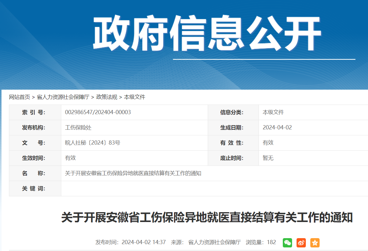 大皖新聞?dòng)?/strong> 近日,安徽省人力資源社會(huì)保障廳會(huì)同省財(cái)政廳、省衛(wèi)生健康委聯(lián)合印發(fā)通知指出,自2024年4月1日起,在我省合肥、淮北、宿州、蕪湖、滁州、馬鞍山6個(gè)市,開展為期1年工傷保險(xiǎn)跨省異地就醫(yī)直接結(jié)算試點(diǎn)工作。自2024年5月1日起,逐步推進(jìn)省內(nèi)異地就醫(yī)直接結(jié)算工作。