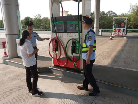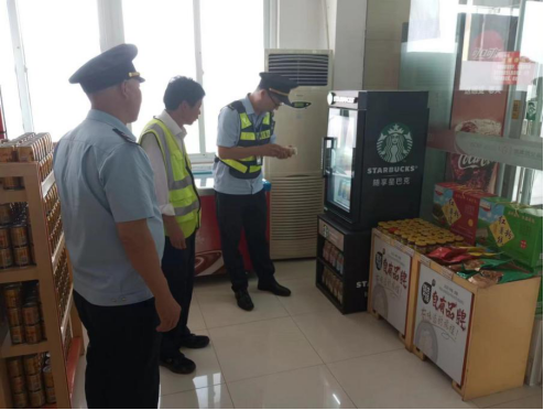 ![]() 執(zhí)法人員在高速服務區(qū),對便利店、加油站等進行安全檢查,重點查看證照是否齊全,進貨查驗索證索票制度是否落實,有無經(jīng)營三無或過期變質食品等行為;對服務區(qū)加油站進行質量檢查,查看油品的檢驗報告及計量器具檢驗是否合格,查看了進出貨臺賬,并告誡加油站工作人員不得短斤少兩。