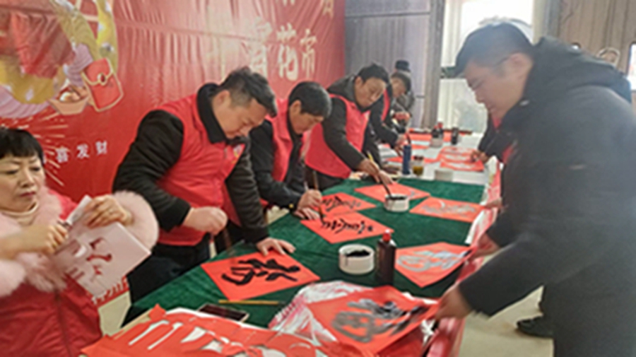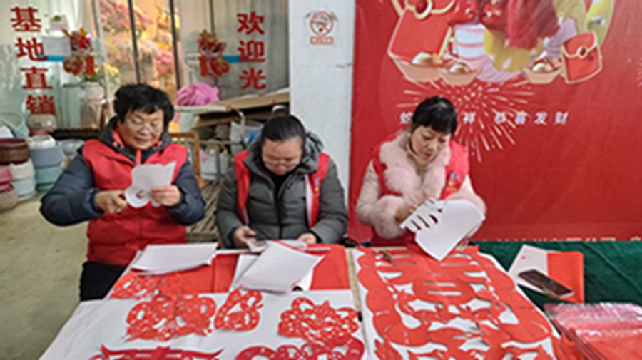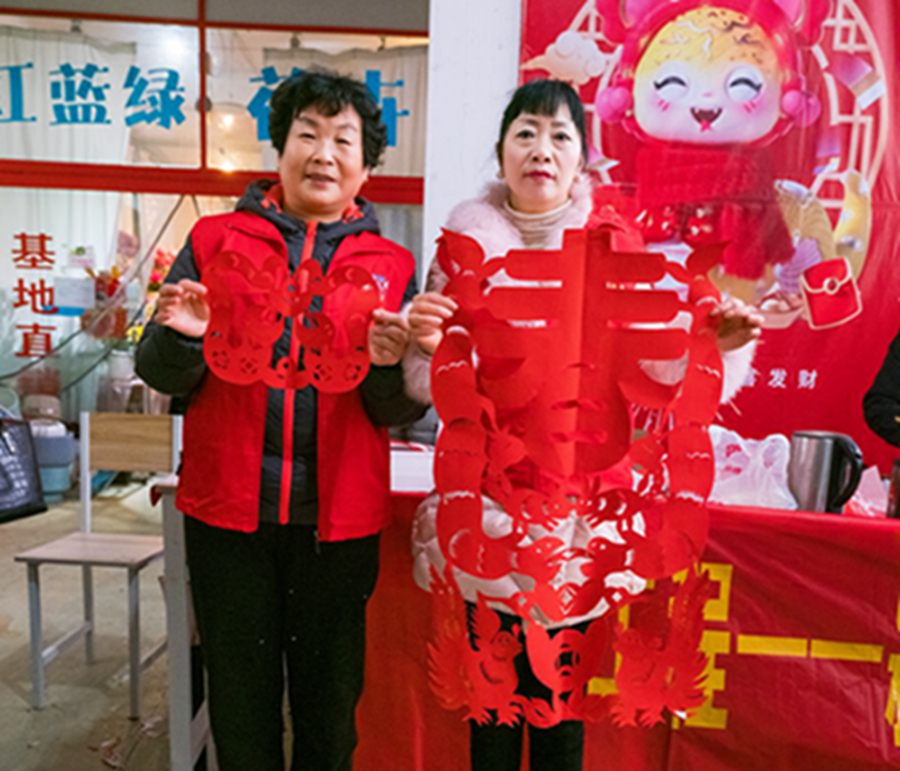 在陽光花卉大市場東門,書畫家們揮毫潑墨,舞動(dòng)新春氣息,春聯(lián)“小龍盤福字,大國領(lǐng)春風(fēng)”龍飛鳳舞;在另一端,大姐姑娘們,剪刀左右擺動(dòng),剪出栩栩如生的迎春剪紙圖案,吉祥如意。