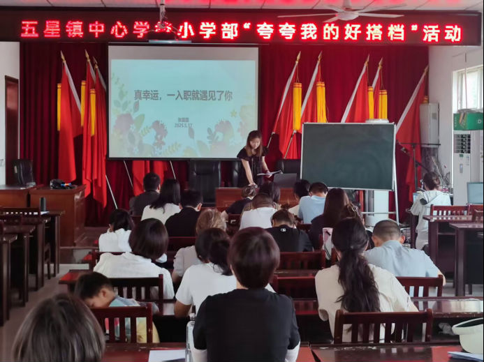 為深化教師團隊協(xié)作意識,凝聚教育合力,5月17日,五星鎮(zhèn)中心學校小學部創(chuàng)新開展 “夸夸我的好搭檔” 主題活動?;顒蝇F(xiàn)場,教師們敞開心扉,用真摯的語言贊美并肩作戰(zhàn)的教育伙伴,展現(xiàn)出新時代教師隊伍團結(jié)互助、攜手育人的動人風采。