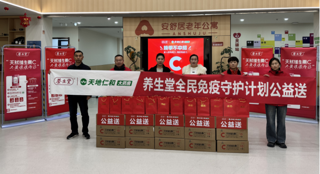 2025年11月26日,國內(nèi)知名健康品牌養(yǎng)生堂與阜陽天地仁和大藥房攜手走進(jìn)阜陽安舒居老年公寓,共同開展“全民免疫守護(hù)計劃”公益活動,以天然之力守護(hù)全民免疫力?;顒泳劢估夏耆私】敌枨?,向老人們贈送養(yǎng)生堂天然維生素C及“免疫呵護(hù)禮包”,以實際行動傳遞社會關(guān)愛,踐行企業(yè)社會責(zé)任。